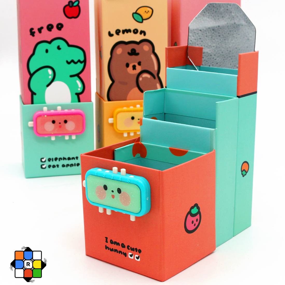 جامدادی رومیزی 3 تکه قفل دار آینه دار حیوانات
