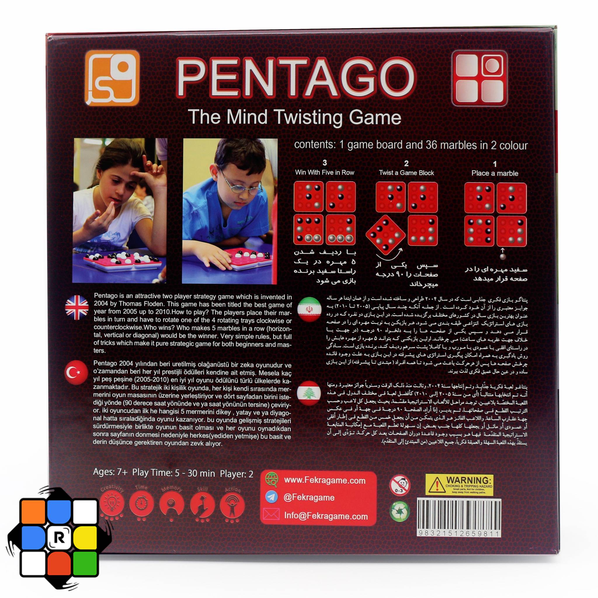 بازی فکری استراتژیک پنتاگو یک بردگیم دونفره هوشمندانه با مکانیک چرخش صفحه است که تفکر استراتژیک، پیشبینی، تمرکز و حل مسئله را تقویت میکند. قوانین ساده اما عمق بالا، آن را به یکی از محبوبترین بازیهای فکری کلاسیک جهان تبدیل کرده است. گزینهای عالی برای رقابت ذهنی خانوادگی و دوستانه.